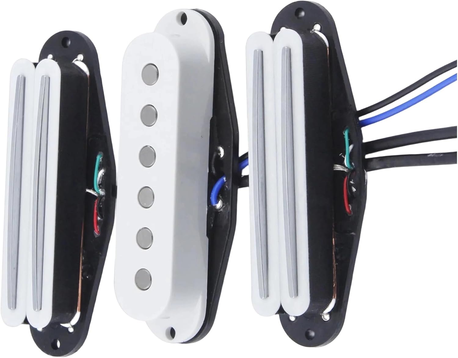 This compact pickup is portable and easy to use, making it a perfect choice for beginner guitarists.Use:Acoustic guitar pickups3PCS/Pack of Dual Rails Pickup+Single Coil Pickup+Dual Rails Pickup for Electric Guitar Parts.Neck Position: Dual Rails Pickup, Resistance 6-7K ohms, 4-wires.Middle Position: Single Coil Pickup , Flat Pole Pieces, Resistance 5-6K ohms ,2-wires.Bridge Position: Dual Rails Pickup, Resistance 9-10K ohms, 4-wires.Magnet: Ceramic Magnet .Color: Black /White /YellowCome with Mounting Screws and Springs.Package Included:1 x Neck Pickup 1 x Middle Pickup1 x Bridge Pickup6 x Screws6 x SpringsIf you have any questions or suggestions, please contact us and we will serve you wholeheartedly.