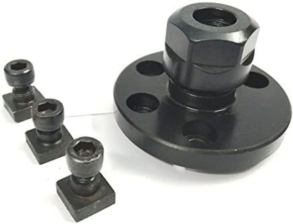 Collet adaptor designed for precision machining operations under 5 microns Suitable for 3" (80 mm) and 4" (100 mm) rotary tables Includes securely fastened T nuts for easy and secure installation Epoxy black finish ensures rust-free longevity Base plate crafted to fit both 3-slot and 4-slot rotary tables seamlessly Versatile compatibility without compromising stability.