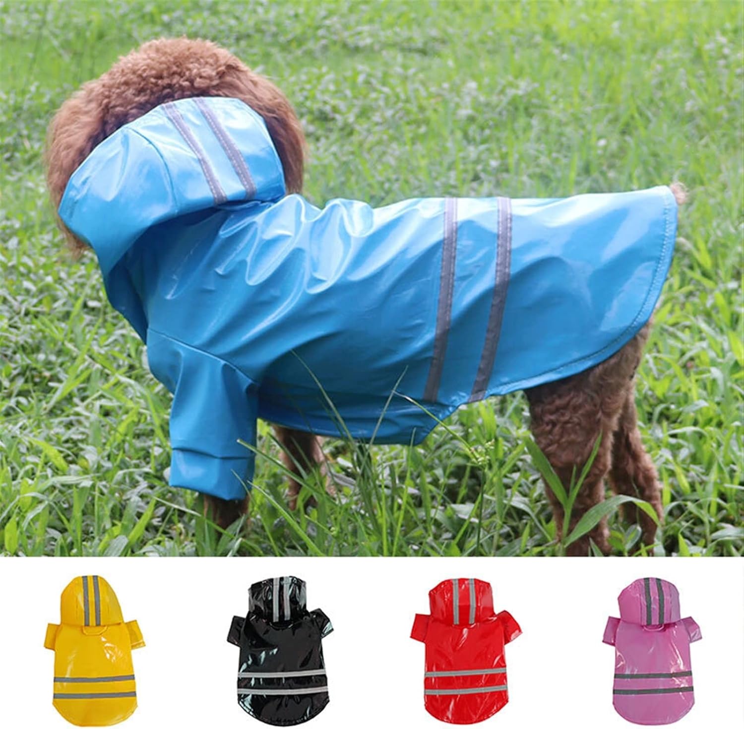 Material:PU waterproof coating clothColor:yellow,blue,black,red,pinkSize:S,M,L,XL(1 inch =25.4mm or 1mm = 0.0393 inch)Package Includes:1PC Pet Raincoat