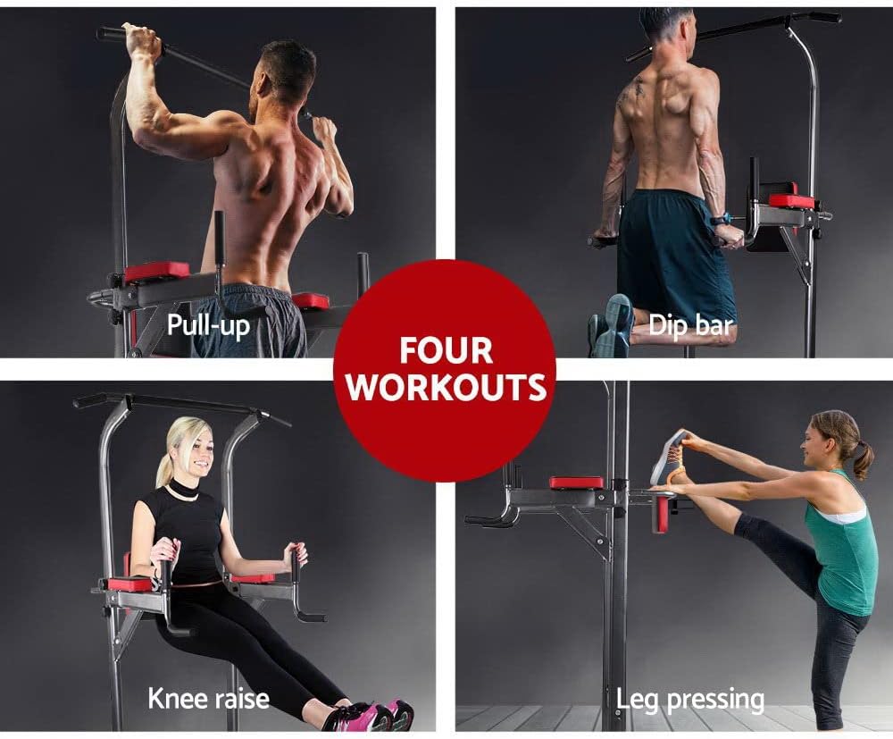 Forget about the gym. Bring the gym to your home with the Everfit multifunctional gym. This comprehensive training station is all you need for a great full body workout and offers a huge range of exercises for your upper body and core. It offers a range of exercises such as bench press, pull-ups, pull-ups, weightlifting, leg lifts, push-ups and more. The fact is that with this versatile power tower, you can train so much to push your body to its limits and achieve results that matter. Made from durable powder coated steel tube, the gym station is durable and strong and features large, non-slip rubber feet that prevent unwanted movement, high-density and sweat-proof padding, as well as padded handles and arm rests for truly safe and comfortable workout programs. Features Complete upper body and core training 4-in-1 multifunctional home gym. Robust, powder-coated steel frame. Cap feet. Padded handles Height-adjustable pull-up bar. High-quality sweat-proof material. High density padding Easy to install. Specifications: Colour: black. Load capacity: approx. 200 kg. Material: steel construction Product Size: 85cm x 67cm x 199cm - 235cm Type: Practice Tower Frame: powder-coated steel. Maximum user weight: 200 kg. Number of packages: 1 Please note: assembly required. Package Content: 1 x Multifunctional Gym 1 x user manual (may not English language not guaranteed). This product comes with 1 year warranty