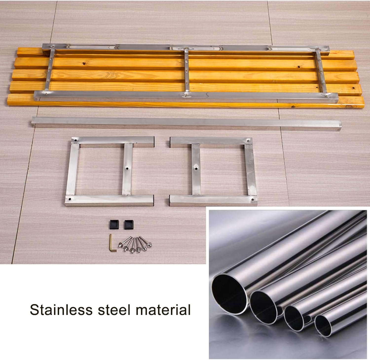 ★This garden bench comes with enough room to seat 2 friends comfortably.★The weatherproof wooden top & frame are treated to withstand even the harshest of seasons★Easy to Maintain, Simply wipe clean with a dry cloth for daily cleaning.Specification:Name: Outdoor weather-resistant benchMaterial: solid wood/steel frameColor:Brown , Yellowsize:100×35×41cm (39.3x13.7x16.1in)120×35×41cm (47x13.7x16.1in)150×35×41cm (59x13.7x16.1in)Please confirm the size carefully before purchasingPackage contains:1 × garden benchPlease note:1. Due to different measurement tools and methods, there may be slight errors. View actual product.2. Product pictures may have slight color differences due to lighting or shooting angles. The actual product shall prevail.3. If you encounter any problems, please feel free to contact us. We will respond to you within 24 hours.