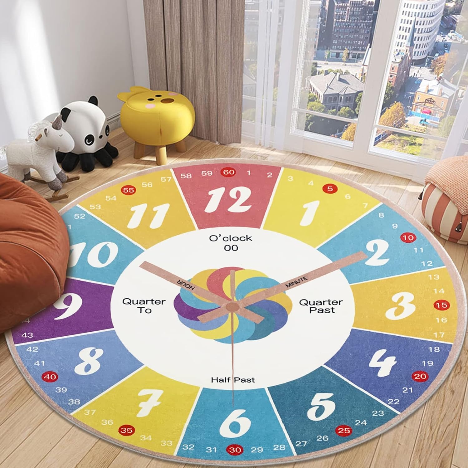 Abeigoi has always been committed to providing our customers with high quality products to ensure the feeling and experience of our customers, and is constantly improving our services for this purpose. Abeigoi kids play mat with alarm clock theme is made of high quality material and uses modern printing and dying technology, which is durable, not easy to fade. The carefully hemmed edges of this round play mat for kids playroom is not easy to worn. This round throw carpet for kids is lightweight can be rolled up and transported easily, so you can take this kids play mat outdoor to experience a different day. Creases may appear due to package and transit reason, and some may disappear themselves after you spread the rug, and for others, you can put some heavy things on the creases and the creases will disappear. You can also use this kids playmat directly and the creases will disappear gradually during usage This circle playroom rug is even a great gift for toddlers, kids, boys and girls, and a great choice for home and kids room decor.