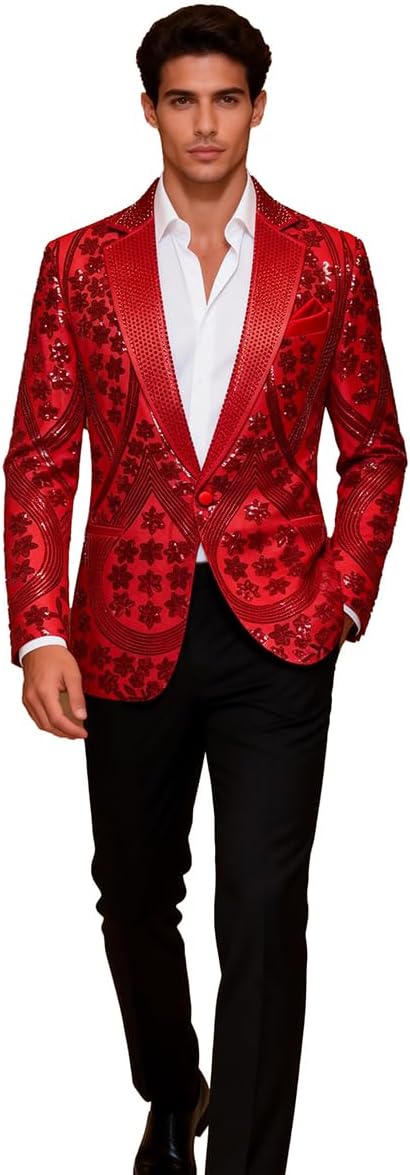 The whole body is covered with high-density sequins, interweaving flowers, curves and geometric patterns to create a three-dimensional light and shadow effect. Presenting a sense of fluidity and luxury when walking, and becoming the visual focus of the party and stage. XS/36R---Shoulder: 44CM/17in,Chest: 99CM/39in,Waistline: 86CM/34in,Clothing length 68CM/26.7,Sleeve Length: 59CM/23in S/38R---Shoulder: 46CM/18in,Chest : 104CM/41in, Waistline: 91CM/35.8in,Clothing length: 70CM/27.5,Sleeve Length: 61CM/24in M/40R---Shoulder: 48CM/18.9in,Chest: 109CM/42.9in,Waistline: 96CM/37.8in,Clothing length: 72CM/28.3,Sleeve Length: 63CM/24.8in L/42R---Shoulder: 50CM/19.6in, Chest: 114CM/44.8in,Waistline: 101CM/39.7in,Clothing length: 74CM/29.1,Sleeve Length: 65CM/25.6in XL/44R---Shoulder: 52CM/20.4in,Chest: 119CM/46.8in,Waistline: 106CM/41.7in,Clothing length: 76CM/29.9,Sleeve Length: 67CM/26.4in XXL/46R---Shoulder: 54CM/21.2in,Chest: 124CM/48.8in,Waistline: 111CM/43.7in,Clothing length: 78CM/30.7,Sleeve Length: 69CM/27.1in XXXL/48R---Shoulder: 56CM/22in,Chest: 129CM/50.7in, Waistline: 116CM/45.6in,Clothing length: 80CM/31.5,Sleeve Length: 71CM/27.9in