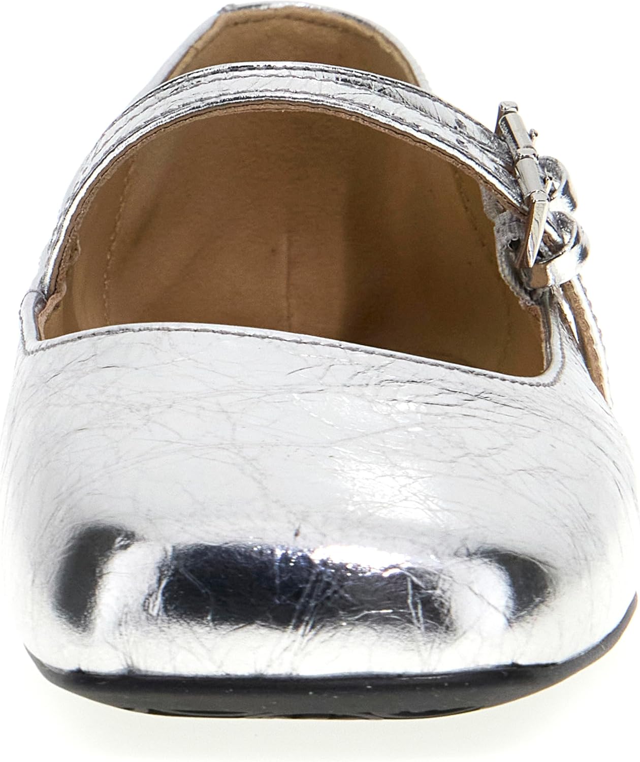 Mary jane ballet flat with a modern twist with double-strap detail and square toe with ample toe box ensuring all-day wearability to easily transition from everyday to after dark.