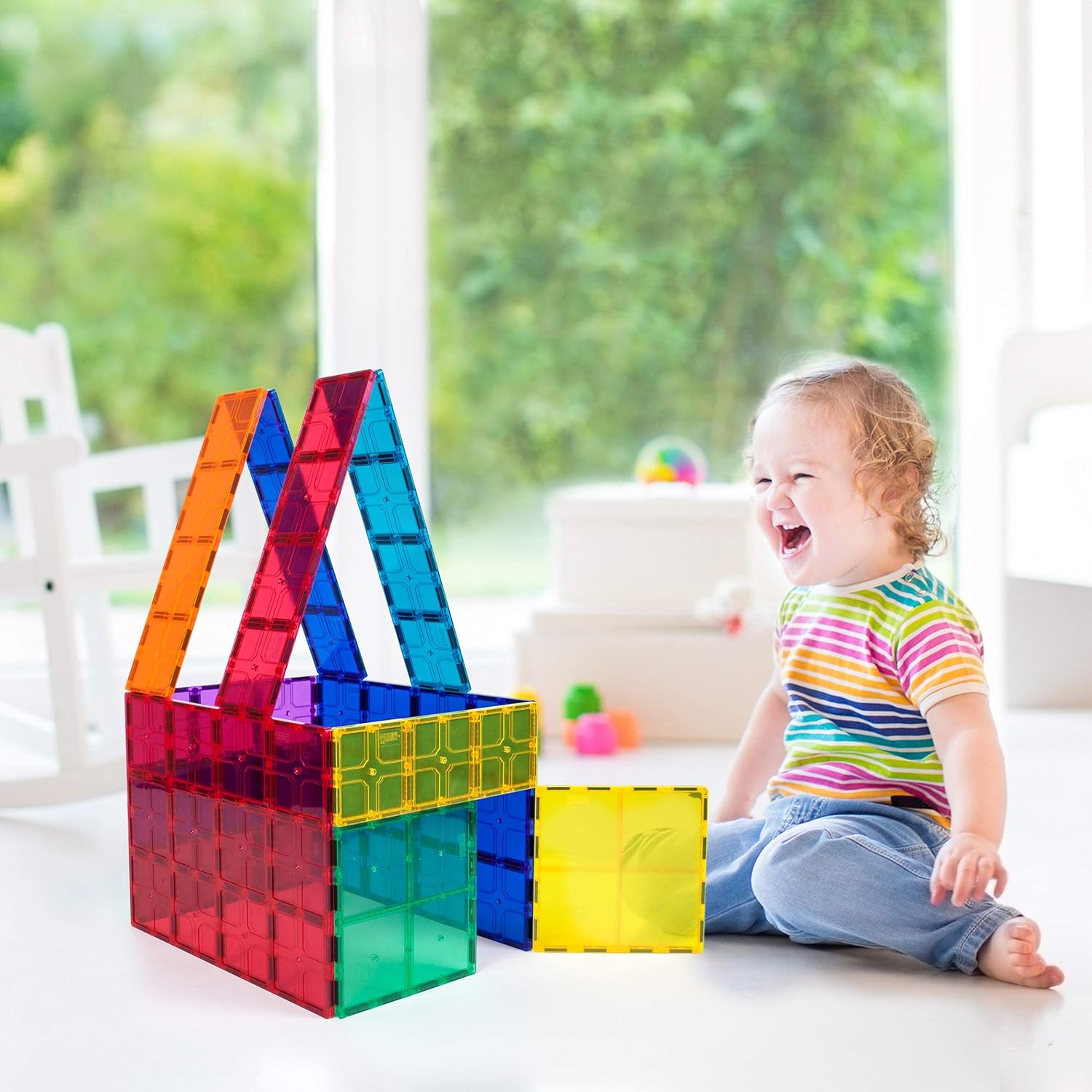 DREAM BIG & BUILD BIG - No limitations, scalable to build as big as desired by adding more pieces to create the master piece. PicassoTiles PT12 features 12 large pieces of stabilizer that is equivalent to 60pcs of regular size 3" x 3" square tiles combined together. The large piece can be utilized as foundation, column, or pillar to enhance the structure stability and assist with completion of the architectural design to build the PicassoTiles in colossal styles. LEARNING BY PLAYING - Never too early to start developing kids creativity. Children can acquire strong sense of color, geometrical shapes, numbers counts, magnetic polarities, structural engineering and 3d architectural design at early age. BONDING BY PLAYING - Entertaining for single or multiple parties and feel the sense of achievement together. Suitable for all ages (3+ and up) by one party of in groups a great way to spend quality time with the family and love ones. LEARNING IS FUN - Encourage creativity which is the key factor to success in today's ever-changing environments. Fun and entertaining, perfect educational presents for school age children that will never go out of style. CREATIVITY BEYOND IMAGINATION - Magnet Building Tiles Clear 3D color Magnetic Building Blocks Playboards for preschool, pretend play group activity, teamwork, kindergarten and more. Easy to construct and easy to put away for storage. BPA FREE & NON-TOXIC - Child safe and lead safe
