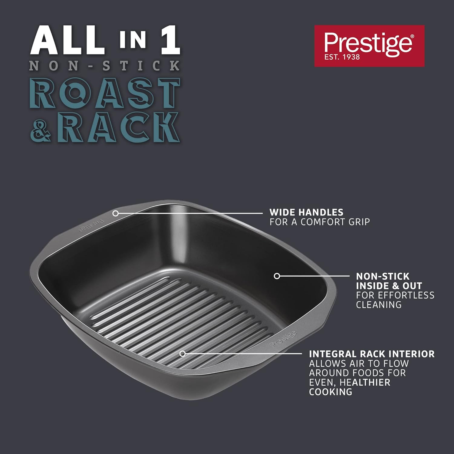 This heavy duty roasting tin is made of carbon steel and designed to ensure even heat distribution for perfect baking results everytime. This really is the perfect oven tray to roast your families favourite ingredients and the increased air flow caused by the integral rack means you'll be keeping your loved ones healthier in the porcess.