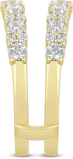 Elevate your wedding ring with this stunning wrap enhancer guard band from Rajput Traders. Featuring 3.00 carats of brilliant round cut lab-created diamonds, this ring adds a touch of glamour to your bridal set. The 14K yellow gold finish creates a warm, luxurious look that complements the sparkling stones. This handcrafted piece is designed to wrap around your existing ring, creating a cohesive and eye-catching ensemble. The enhancer style provides additional security while transforming your solitaire into a more elaborate statement piece. Perfect for special occasions or as an anniversary upgrade, this ring guard combines classic elegance with modern sophistication. The lab-created diamonds offer the same optical and chemical properties as natural diamonds, making this piece both beautiful and practical.