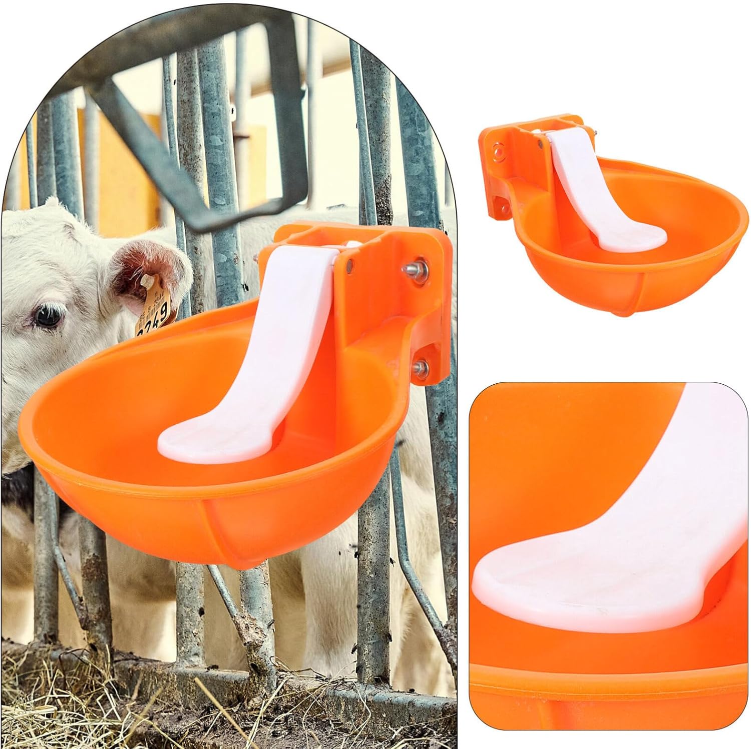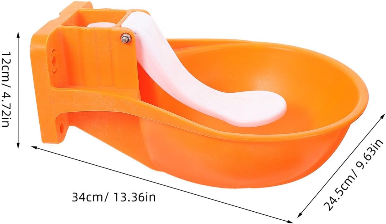 Description1 Set of Automatic Cow Drinking Water Bowl Cow Water Feeder Animal Water DispenserFeaturesColor:OrangeMaterial:PlasticSize:34.00X24.5X12cm/13.36X9.63X4.72inPackage Includings1 x drinking water bowl2 x iron rings2 x screws4 x pads