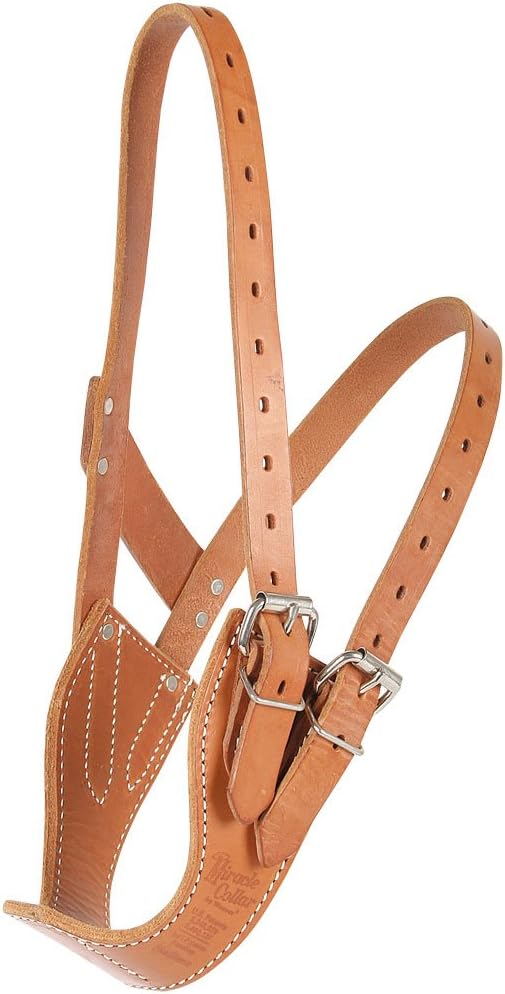 The exclusive, patented Miracle Collar stops cribbing in seconds. Its unique, effective design is guaranteed to stop horses of all ages, breeds and disciplines from cribbing or your money back. With over ten years on the market and thousands of satisfied users, the Miracle Collar is one of the best anti-cribbing devices available. Carefully handcrafted from top quality harness leather for weather resistance, strength and gentleness to the hair coat. The collar's anatomically-correct fit applies pressure only when your horse attempts to crib so it can be worn while eating, drinking, grazing and when being ridden. Specially-designed with a unique shape, the Miracle Collar stays in place for maximum effectiveness. Non-rust stainless steel hardware for durable performance. Includes easy-to follow directions. U.S. Patents #5,343,829 and #5,460,125. Large size fits warm bloods, drafts and large horses.