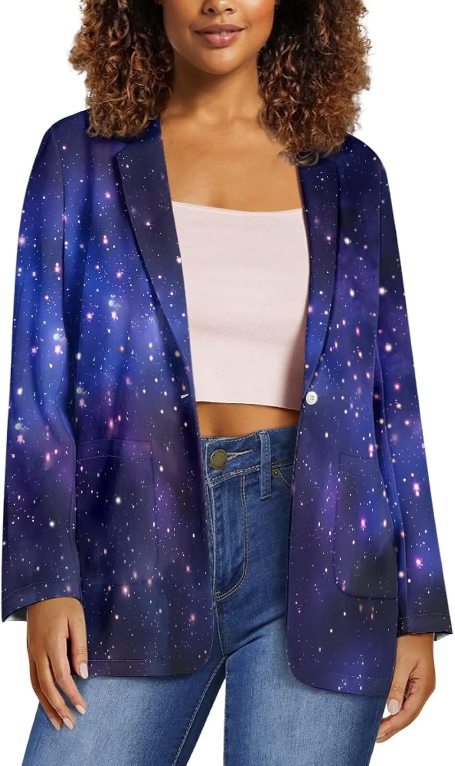 Women's Casual Blazer Long Sleeve Lapel Suit Jackets One Button Business Work Office Suit Blazers with Pockets Design: Various prints and multi-colors for you to choose, such as: leopard, cow print, floral, galaxy, animals, etc Occasion: Fall, winter, spring, casual business, work, office, daily wear, travel, holiday, wedding, party, concert Washing Care: Hand washable or machine washable, do not soak for a long time, no bleach Tips: Please allow little color differences due to different camera or light environment Due to different measurement methods, it is reasonable for 1-2cm size deviation